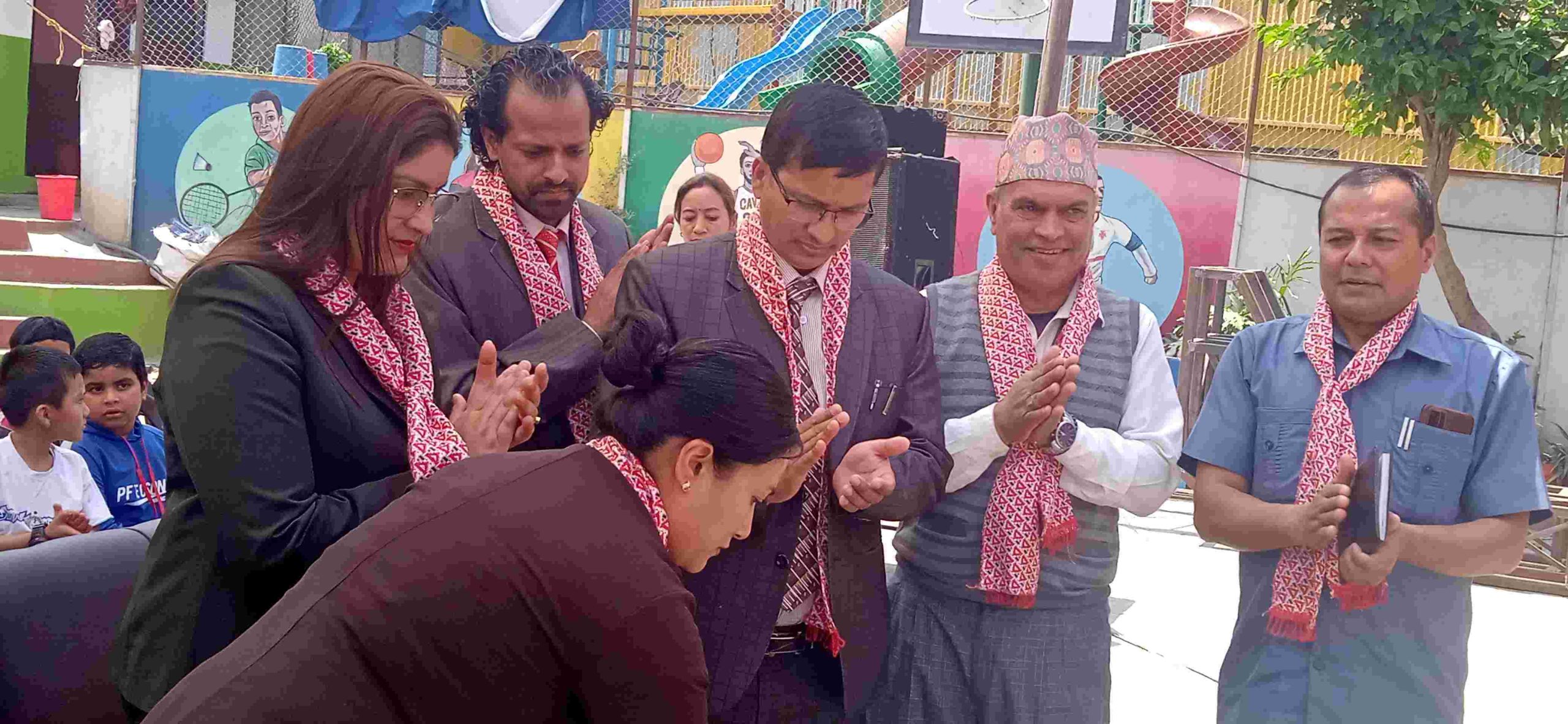वरिष्ठ लोकगायक नवराज घोरासिनी र चर्चित गायिका मनिषा घोरासिनीले स्टेजमा गीत गाउँदा स्कुलका प्रिन्सिपल लगायत शिक्षक – शिक्षिका विद्यार्थी -भाइबहिनीहरुले नाचेर साथ दिनुभएको थियो ।