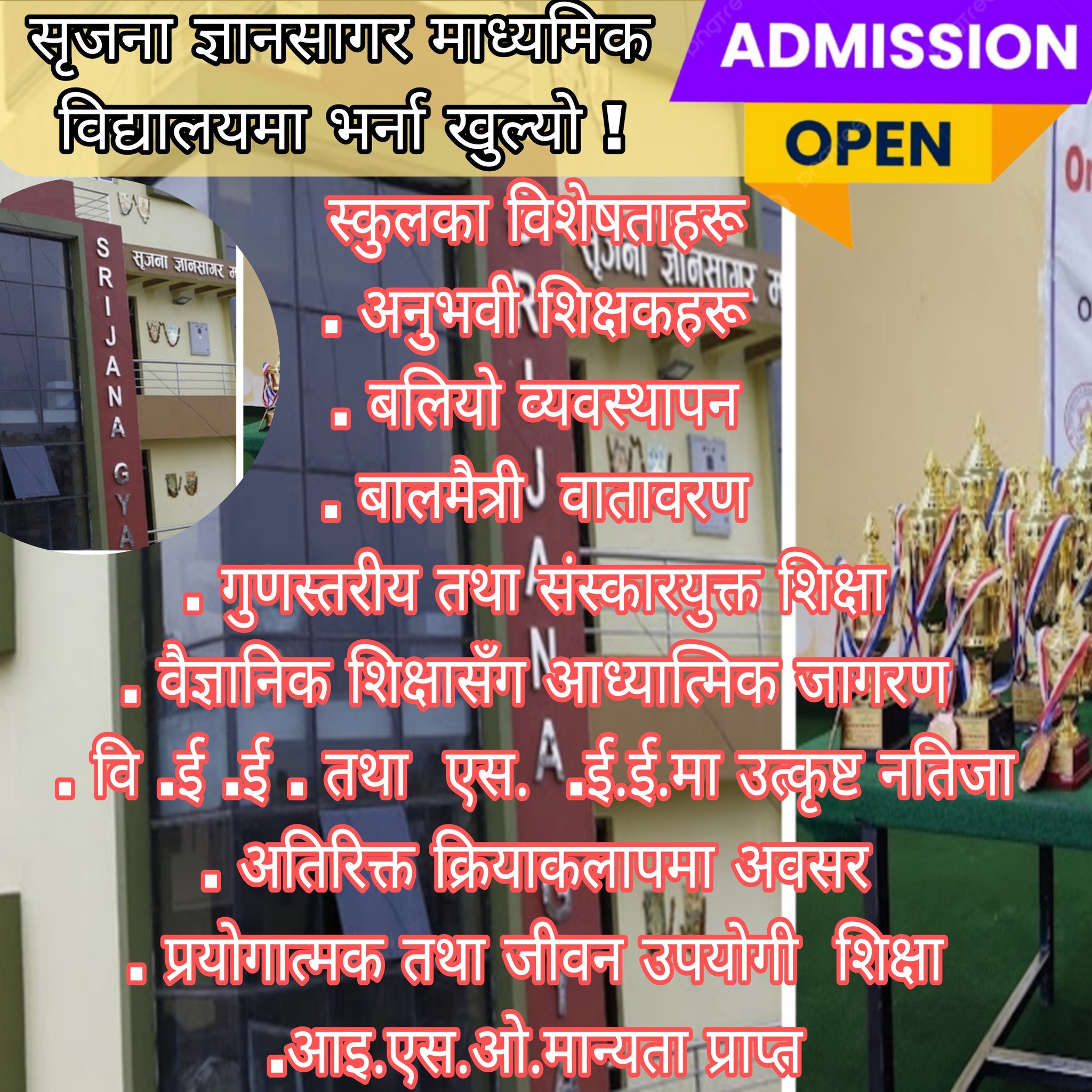 नयाँ वर्ष २०८२ को अभिभावक , शिक्षक , विद्यार्थी तथा विद्यालय परिवारका समस्त सदस्यहरु , शुभचिन्तक एवं देश विदेशमा रहनुहुने सम्पूर्ण नेपाली दाजुभाइ तथा दिदीबहिनीहरुमा नयाँ वर्ष २०८२ को हार्दिक मङ्गलमय शुभकामना व्यक्त गर्दछौं – सृजना ज्ञानसागर मा.वि . तारकेश्वर काठमाडौँ